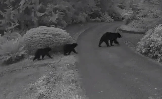 It’s been that kind of month here. After months of not seeing any sign of bears, we have plenty. One night we had two 2-3 year old bears come through, clearly not full grown but old enough to be kicked out by mom. And the next night, a mom showed up with two first year cubs in tow. And if that wasn’t enough fun, the next night another bear, this one a full adult, wandered through and seems to have grabbed a few apples off the tree. That is six different bears in 48 hours, which makes me wonder if there’s some kind of convention for bears going on around here.