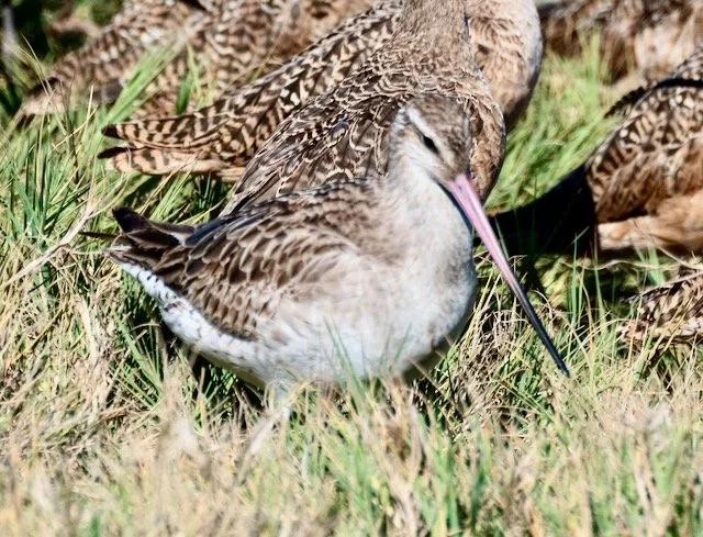 So in search of these rare (for Washington) birds, I drove 90 minutes, parked at the marina, chatted with a couple of other birders there chasing these Godwits, and then walked over to the dock. Along the rocks on the shore of the marina was a huge flock (300+) of godwits, and much to my amusement, less than ten feet from where I was standing, were the two Bar-tailed godwits, waving and offering autographs.